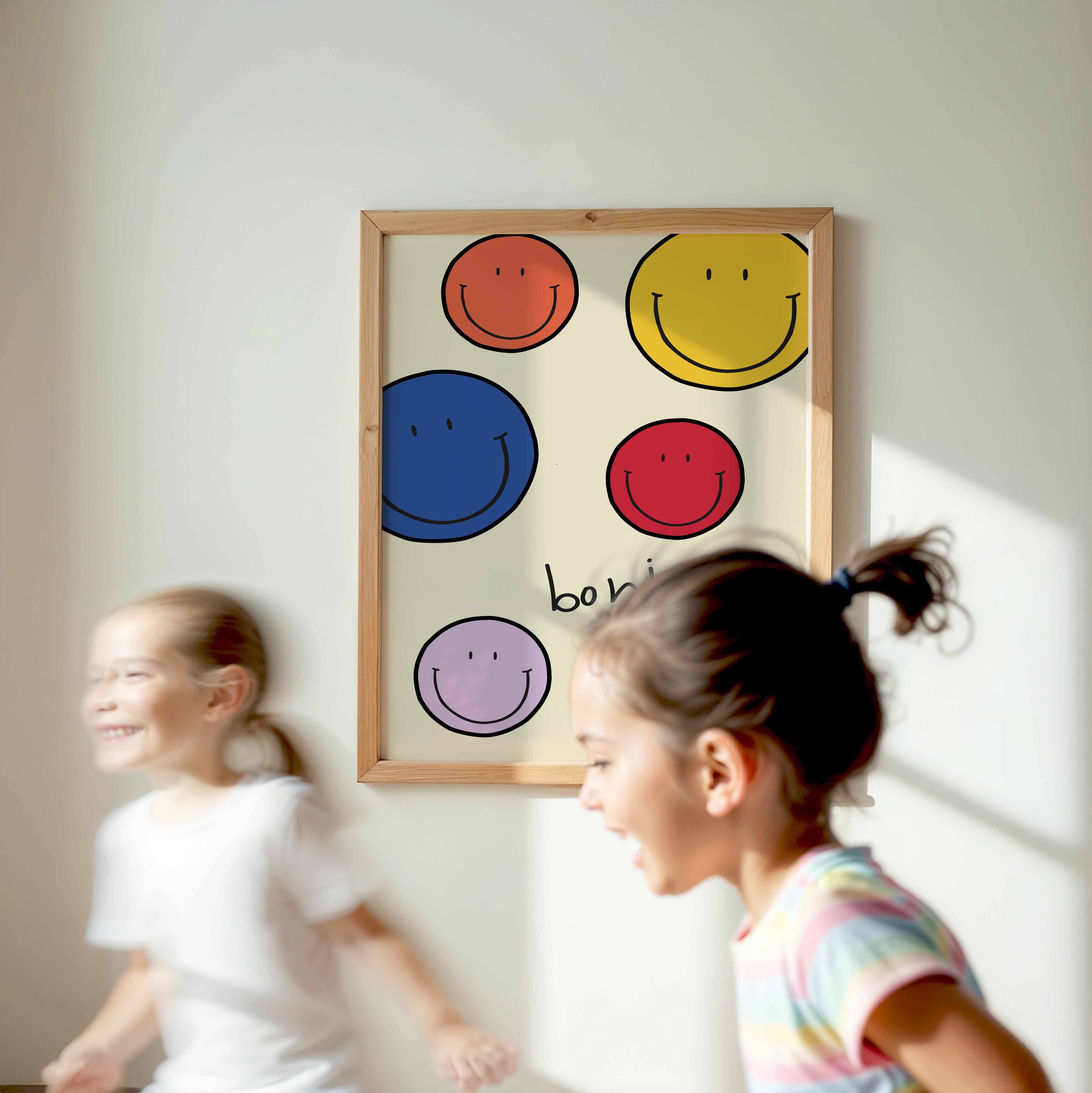 a picture of a picture of a smiley face on a wall